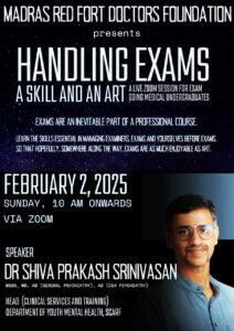 The Speaker for the meeting is Dr Shiva Prakash Srinivasan. He is a highly qualified Psychiatrist and heads the Dept of Youth Mental Health at SCARF.